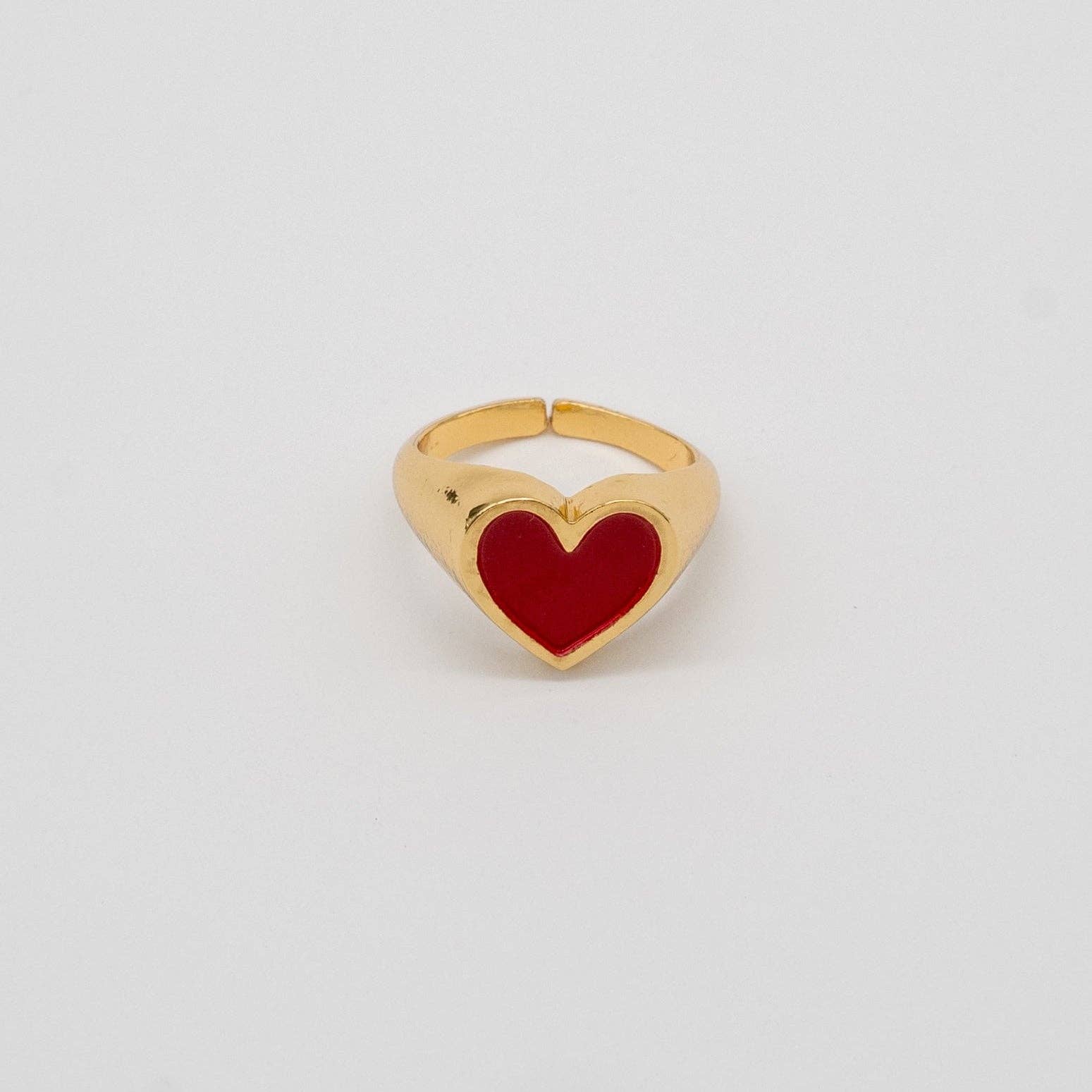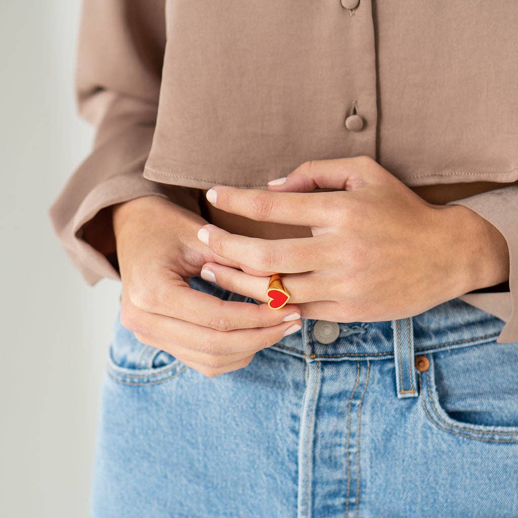 This handmade Heart Ring will be the perfect statement piece to make you stand out this season. The bold red and bright gold combination completes any day or night look!