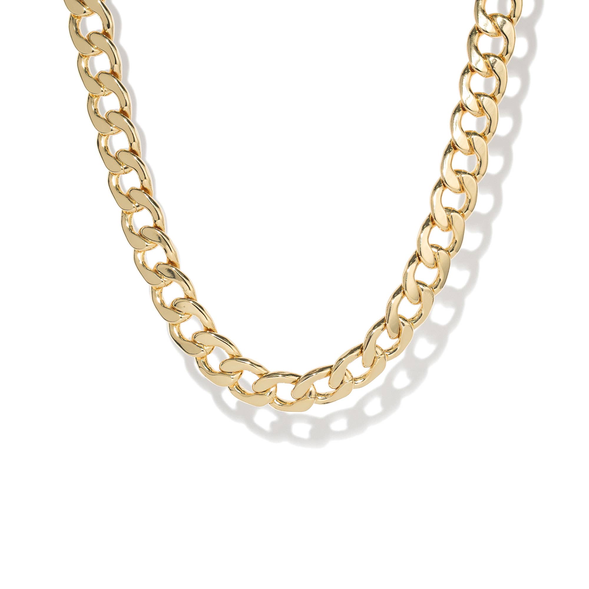 DESIGNER NOTE This beautiful chunky link necklace features large, eye-catching links that shimmer in the light, making it a perfect statement piece for any occasion. The necklace adds a touch of elegance to any ensemble and is sure to turn heads. It is high quality and is designed to last.