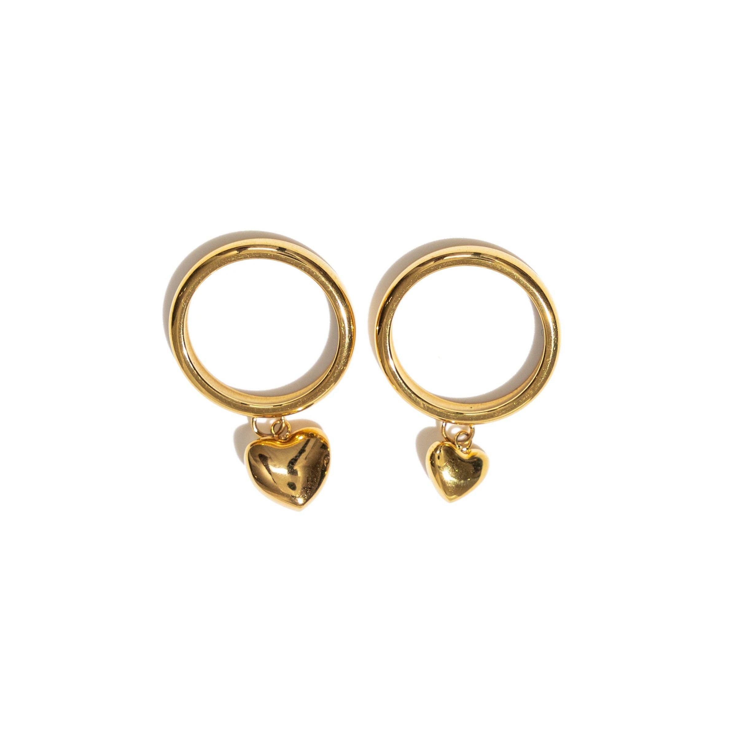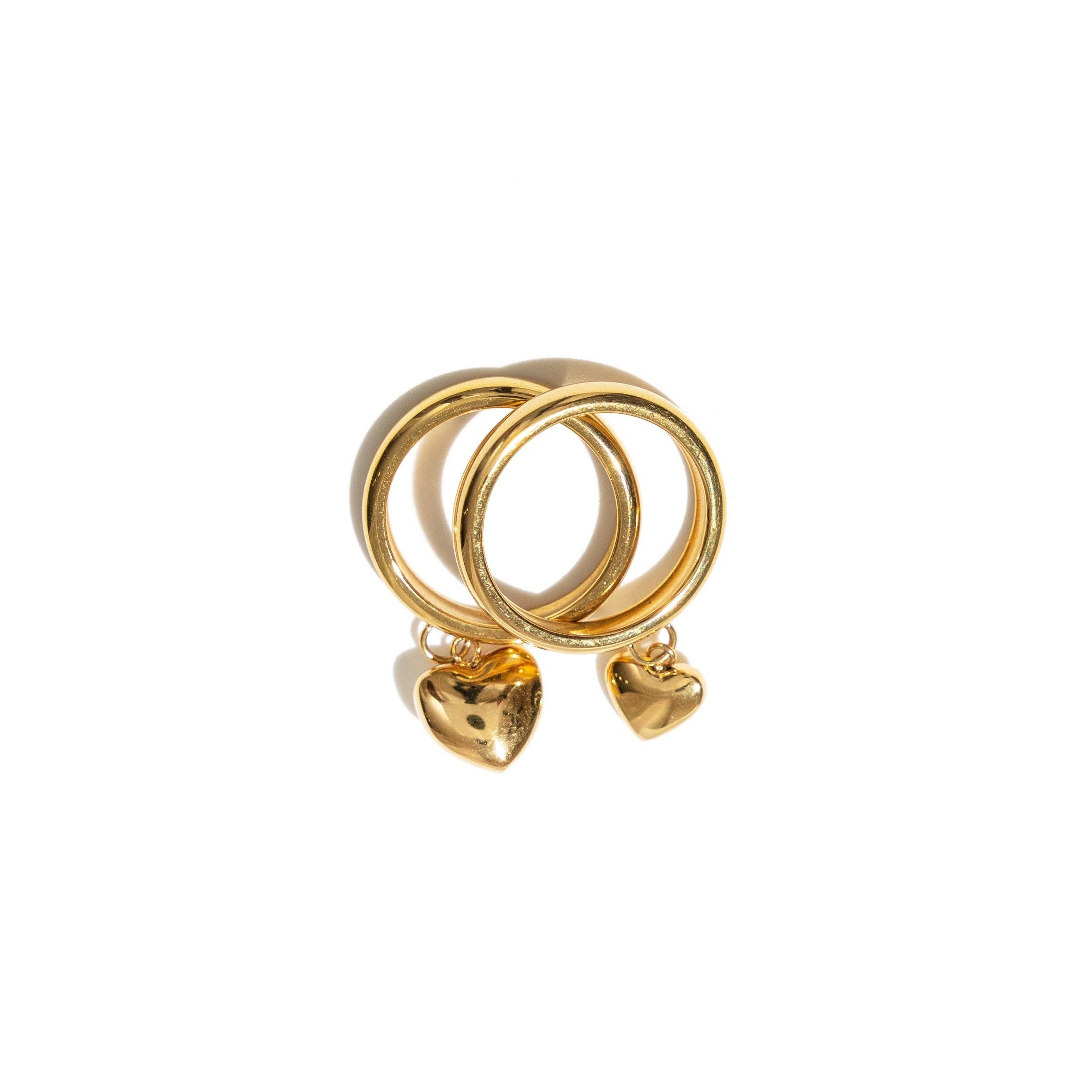 Waterproof Gold Puffy Double Heart Ring: 7