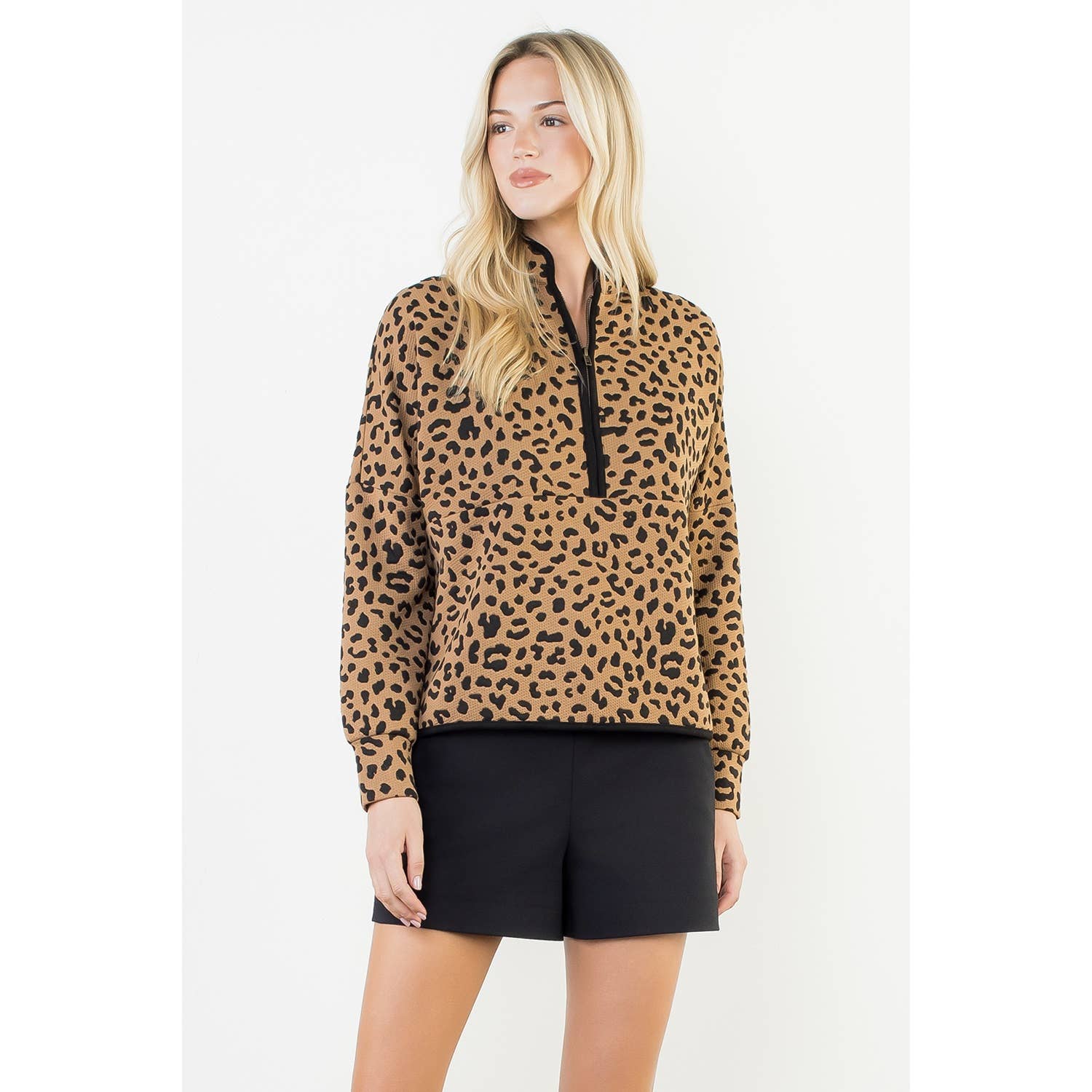 Cheetah Print Quarter-Zip Sweater