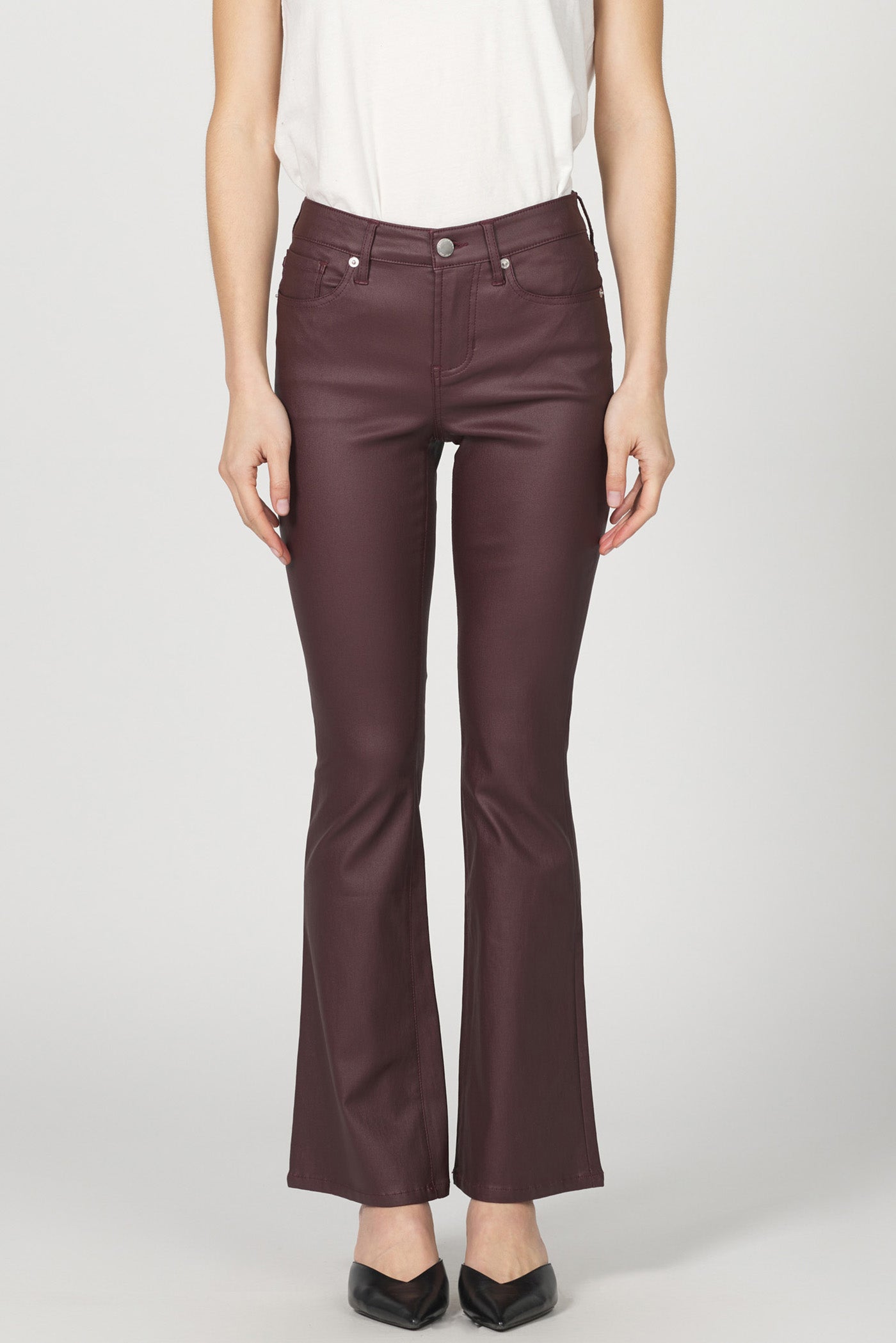 Jaxtyn mid rise coated pant with a clean hem, designed to provide a sophisticated and polished look for any occasion.