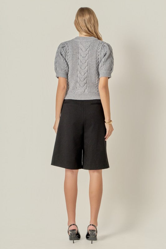 Cable knit puff sleeve sweater.