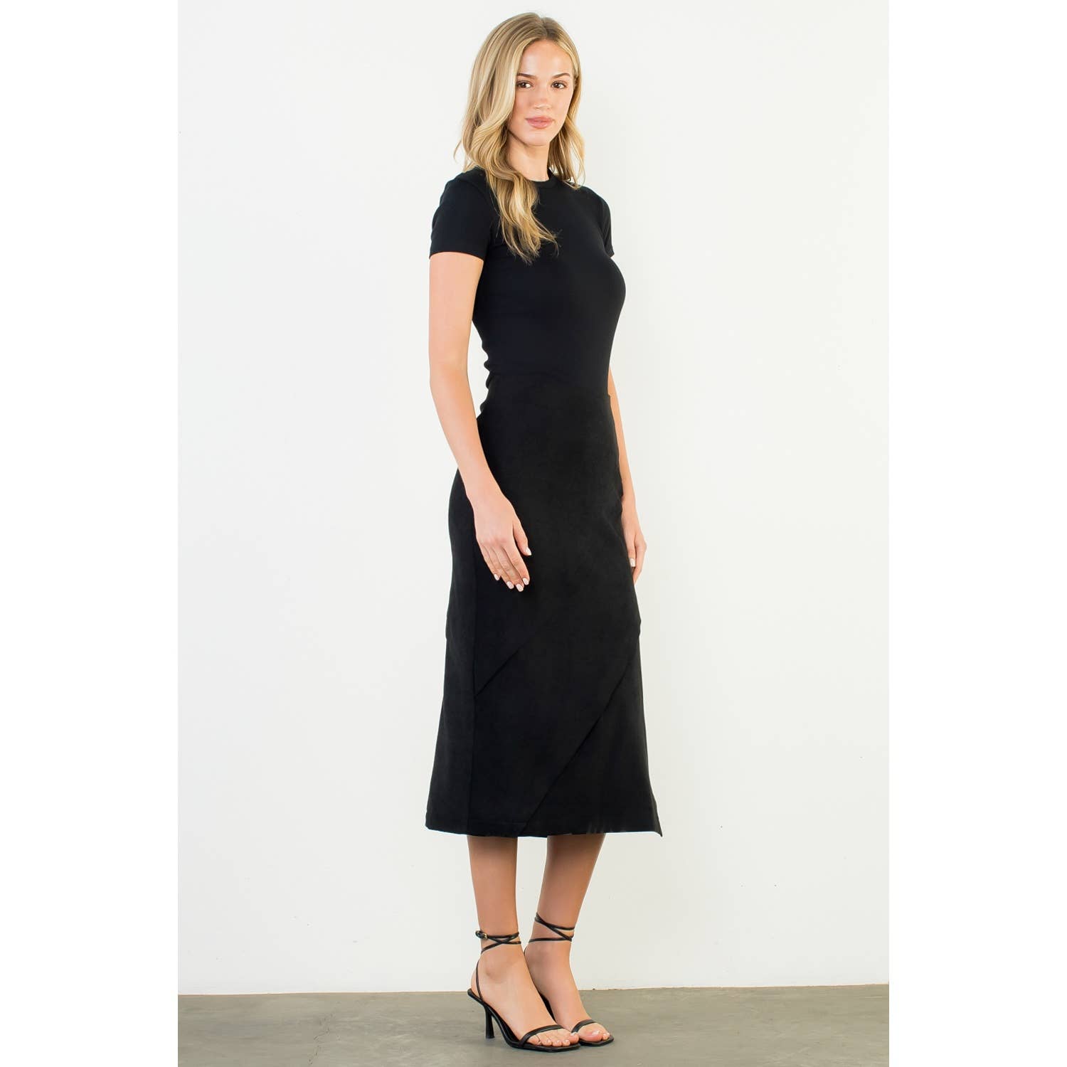 Suede Wrap Detail Midi Skirt. / Style Measurements for Size S / Designed in USA - Body Length: 31 in - Waist Width: 26 1/2 in - Bottom Opening: 18 in. / Model Sizes - Wearing Size S - Height 5' 9", Bust 32", Waist 25 1/2", Hips 36".