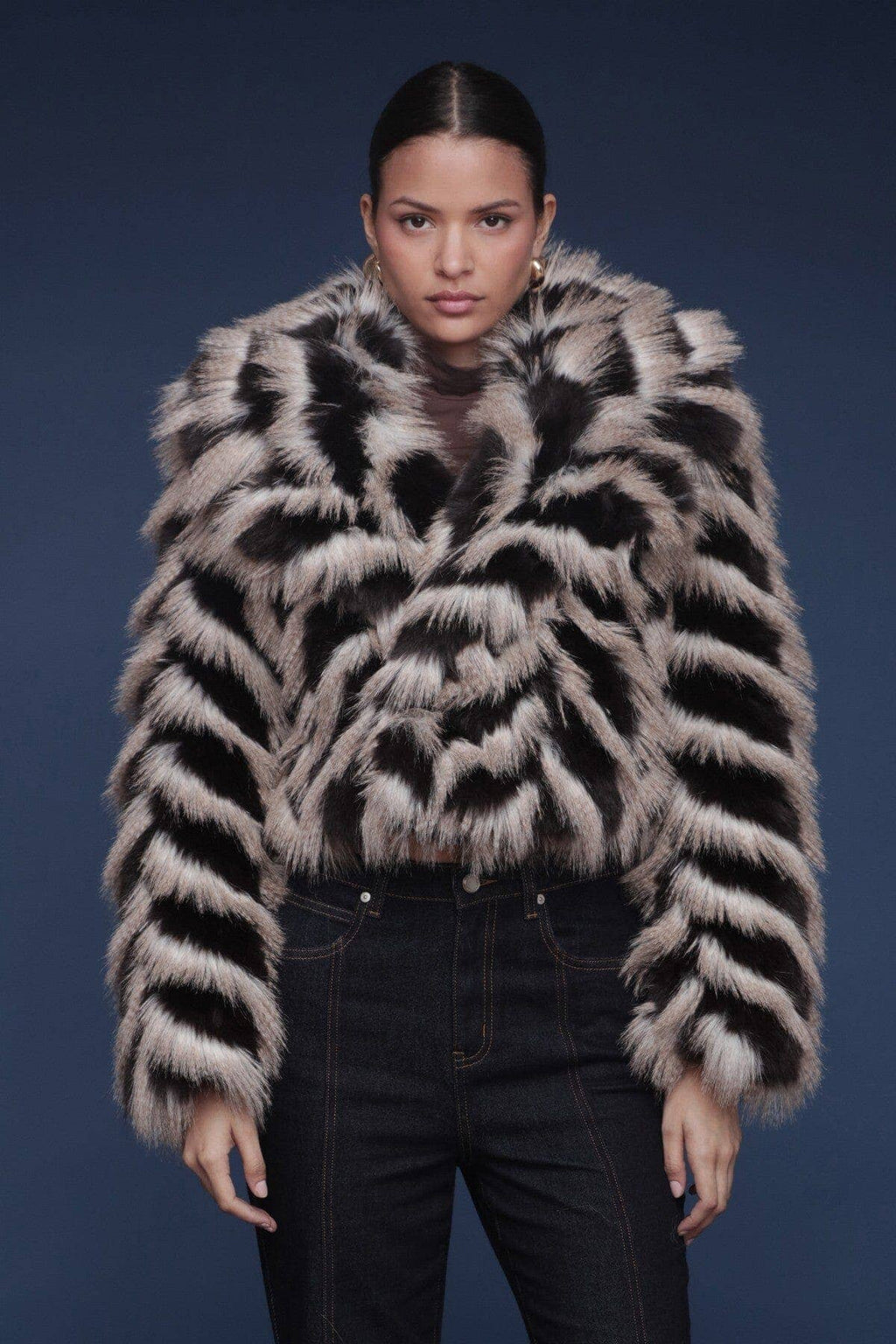 Chevron Faux Fur Cropped Coat