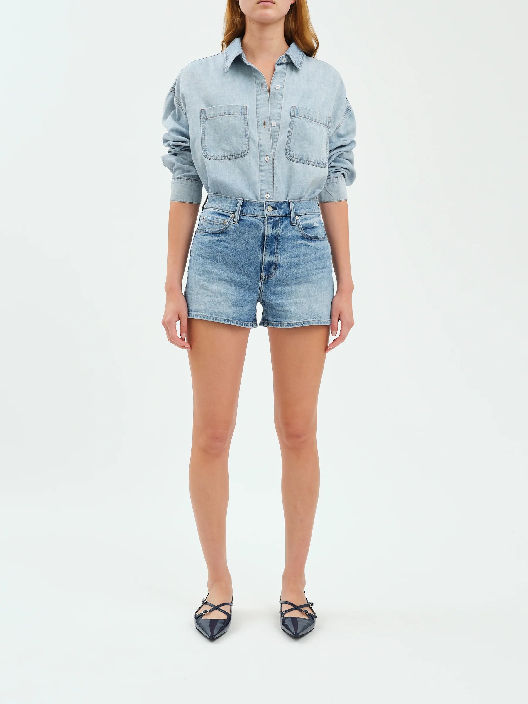 A denim short in the most iconic fit of all time — the cutoff. It features a waist-defining high rise and clean hems set against a versatile medium wash. Constructed from our Tough Love fabric, this short is rigid but yields to your body in all the right ways.